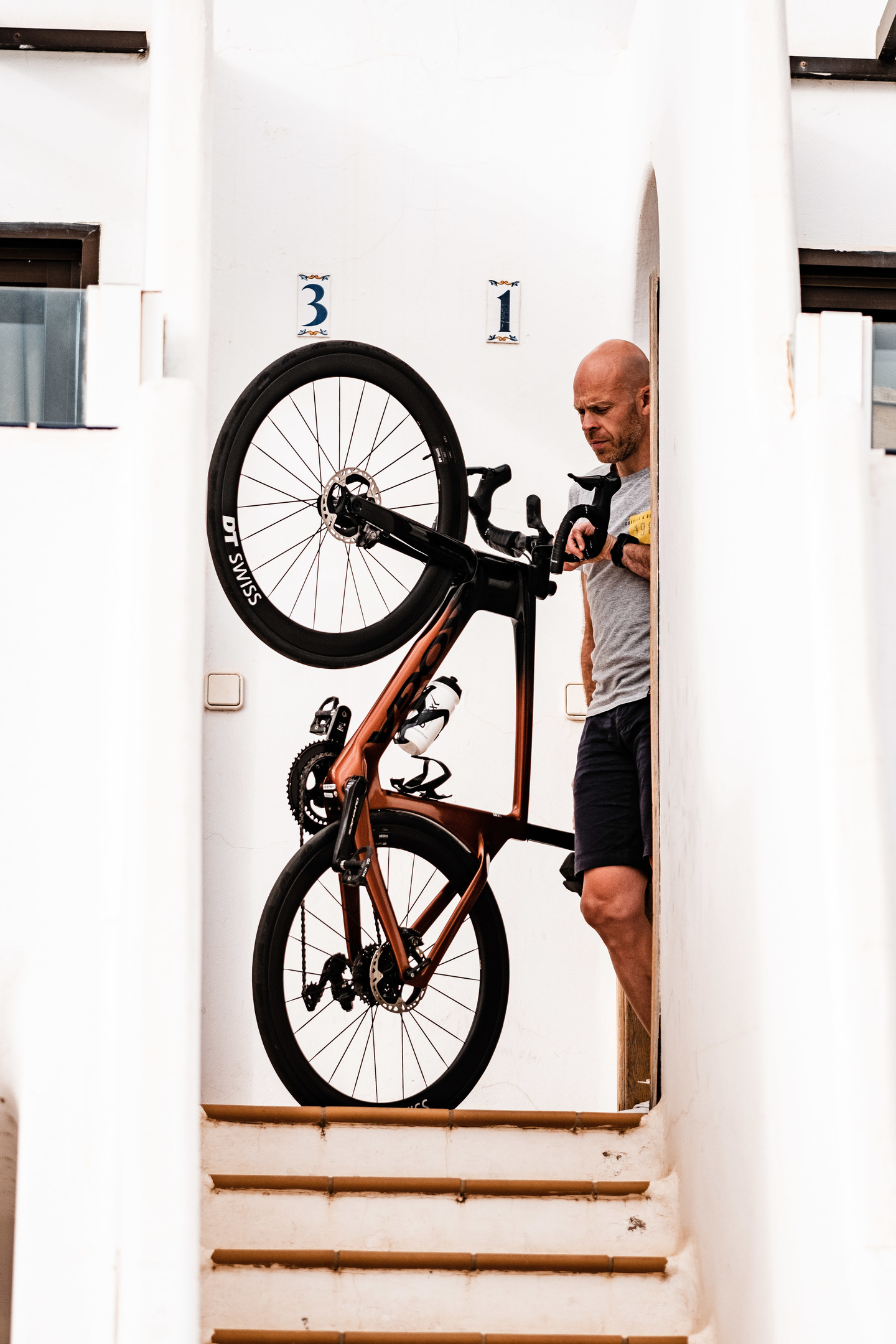 De Kinsei Premium valt op door de SRAM Rival AXS elektronische en draadloze schakelgroep, de 50mm hoge KOGA carbon wielen en het aluminium stuur met ergonomische bovenzijde.